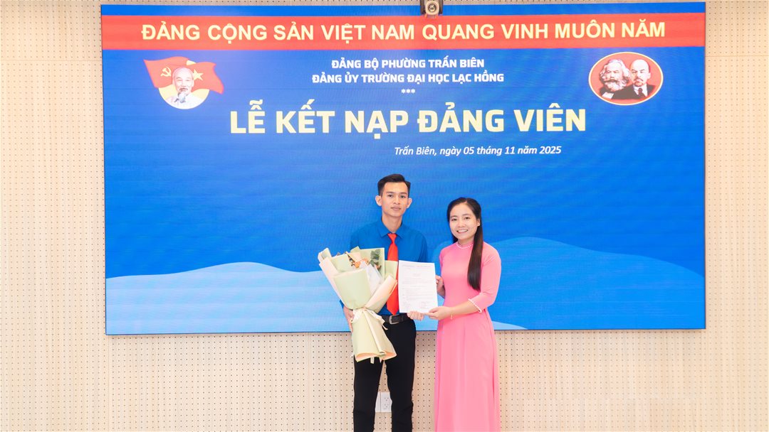 Thực hiện Nghị quyết của Đảng ủy Trường Đại học Lạc Hồng về công tác phát triển đảng viên, được sự đồng ý của Đảng ủy phường Trấn Biên, ngày 05 tháng 11 năm 2025, Chi bộ 5 – Đảng bộ Trường Đại học Lạc Hồng đã long trọng tổ chức Lễ kết nạp đảng viên mới cho đồng chí Nguyễn Thanh Phú, sinh viên Khoa Cơ điện – Điện tử.