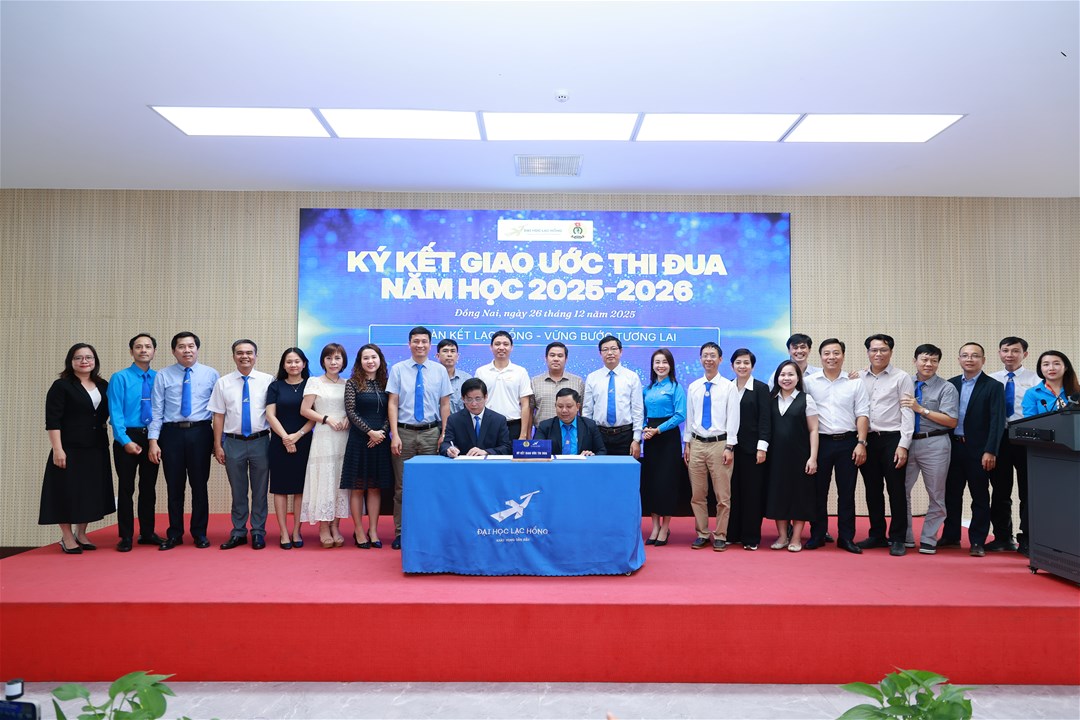 ­Dịp này, Lễ ký kết Giao ước thi đua năm học 2025 – 2026 cũng được tổ chức, thể hiện quyết tâm đoàn kết, thi đua hoàn thành tốt nhiệm vụ trong năm học mới. Qua đó, tiếp tục nâng cao chất lượng hoạt động Công đoàn, xây dựng tổ chức Công đoàn Trường Đại học Lạc Hồng ngày càng vững mạnh, hiệu quả, đáp ứng yêu cầu trong giai đoạn phát triển mới của nhà trường./.