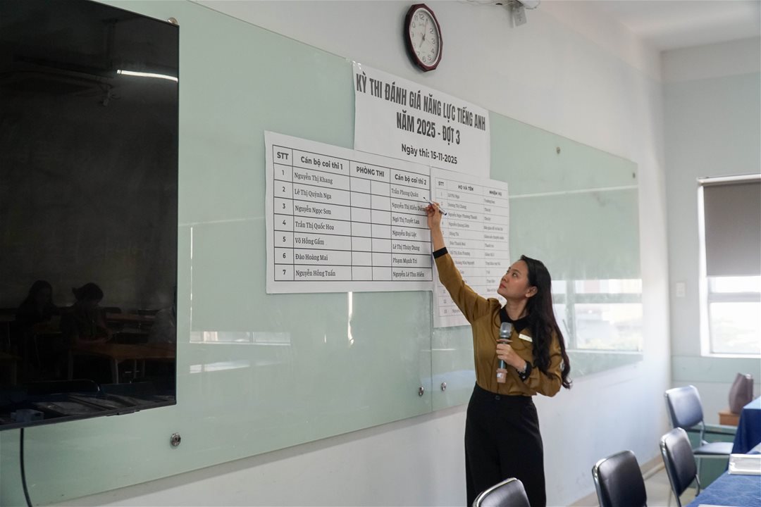 Theo Điều 5 của Thông tư, điều kiện dự tuyển yêu cầu thí sinh phải “Có năng lực ngoại ngữ từ Bậc 3 trở lên theo Khung năng lực ngoại ngữ 6 bậc dùng cho Việt Nam”. Đây là tiêu chuẩn cần thiết giúp đảm bảo rằng người dự tuyển có đủ khả năng sử dụng ngoại ngữ trong học tập và nghiên cứu ở cấp độ thạc sĩ. Để đáp ứng yêu cầu này, ngày 15/11/2025, Khoa Sau Đại học đã phối hợp với nhiều đơn vị khác nhau của trường, để tổ chức kỳ thi đánh giá năng lực tiếng Anh.