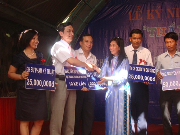 Over the past years, in addition to training, research activities and technology transfer, teachers and students of Lac Hong University have always paid special attention to charity activity. They have made efforts to take care of difficult children, AO/dioxin affected children, disabled children and orphans… Que Huong Charity Centre for Handicapped Children is a regular destination of Lac Hong University. The event is a meaningful activity to encourage teachers and students to continue their efforts to share with unfortunate people.