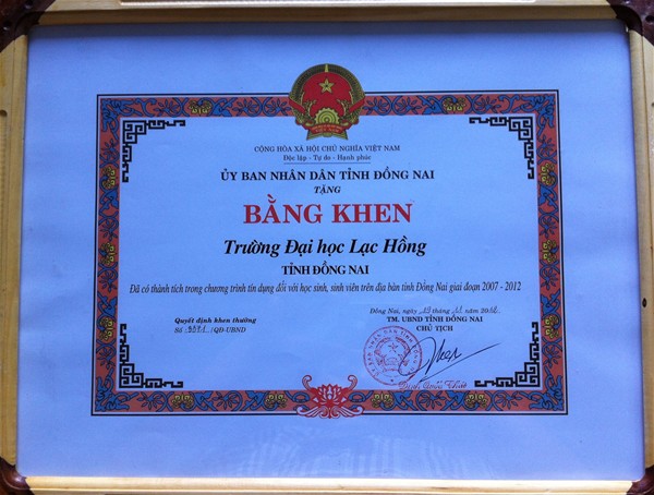 At the event, Lac Hong University was honorably awarded certificate of merit by provincial People’s Committee for its achievements in preferential credit program for students in the locality, stage 2007 - 2012.