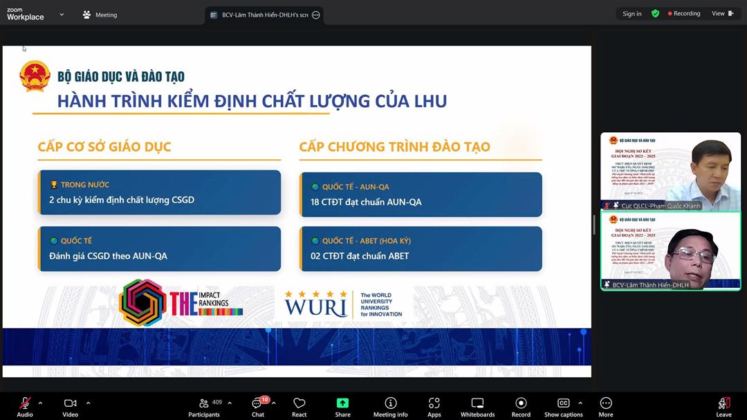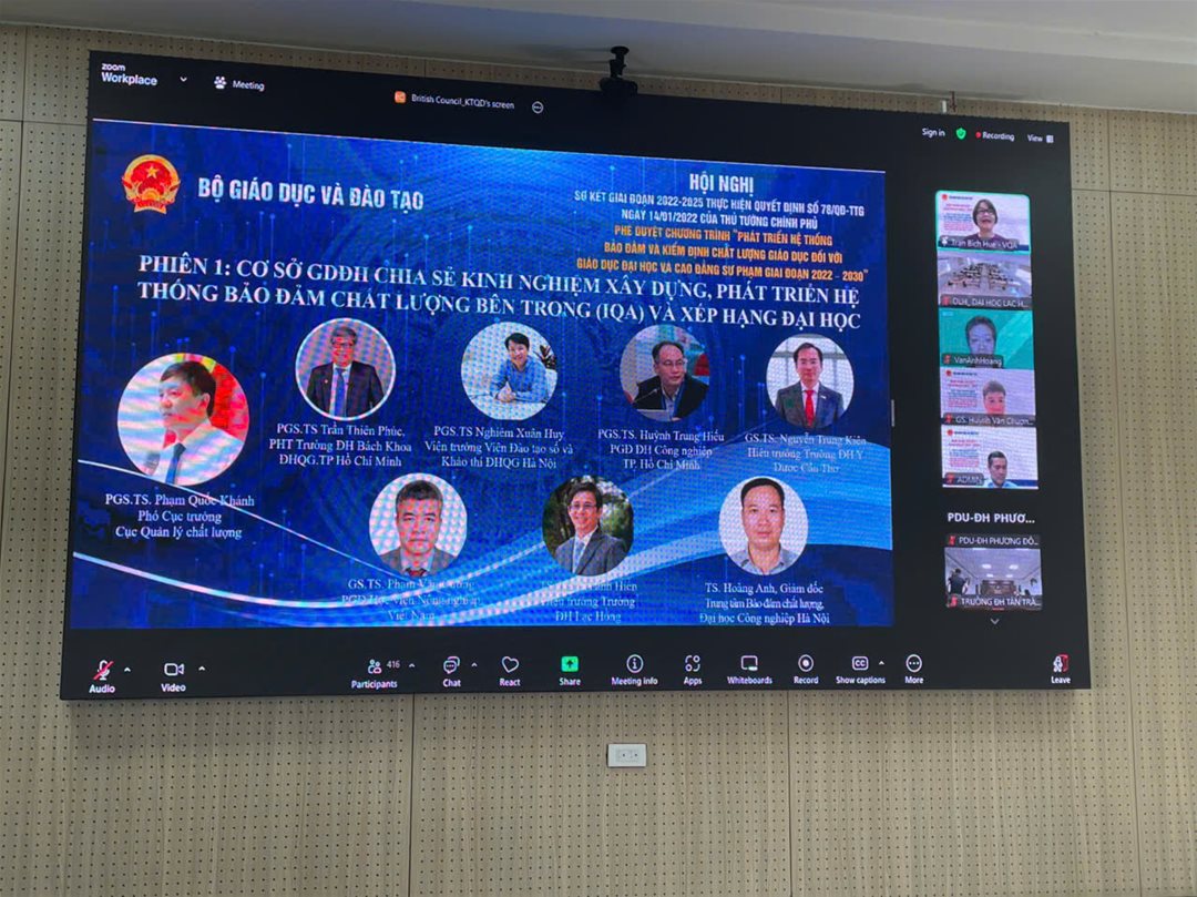 The mid-term review conference on the implementation of Decision No. 78/QĐ-TTg, issued by the Prime Minister approving the “Program on Developing the System for Quality Assurance and Accreditation in Higher Education and Pedagogical Colleges for the 2022–2030 Period”, was held online under the organization of the Department of Quality Management (Ministry of Education and Training), with participation from seven higher education institutions nationwide.